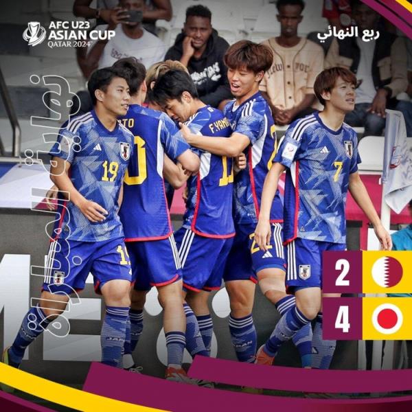 U23亚洲杯,日本队加时4-2击败卡塔尔,晋级半决赛。