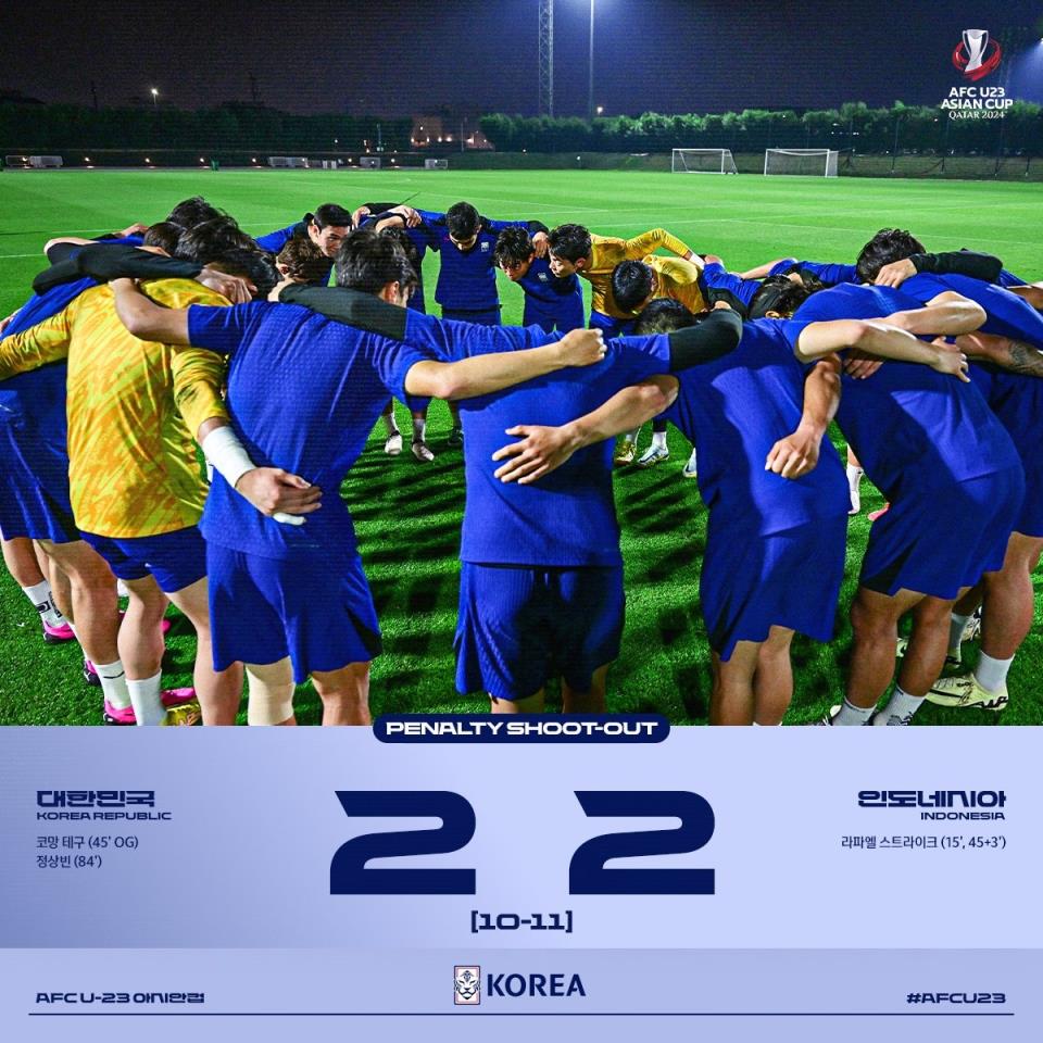 U23亚洲杯,十人韩国国奥与印尼国奥打满120分钟,双方在点球大战鏖战12轮,最终印尼胜出,韩国出局无缘奥运。